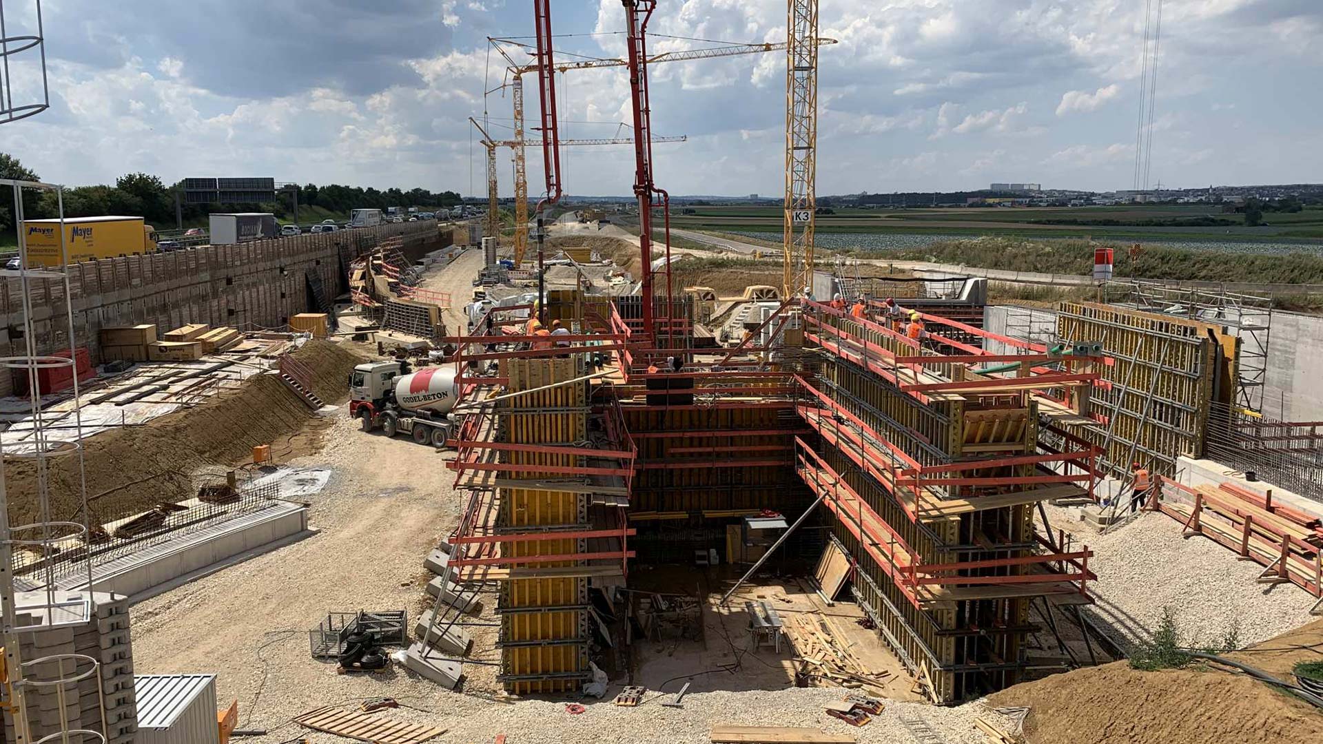 - Abfahrtsrampen mit Winkelstützwänden; Gesamtlänge 320 m