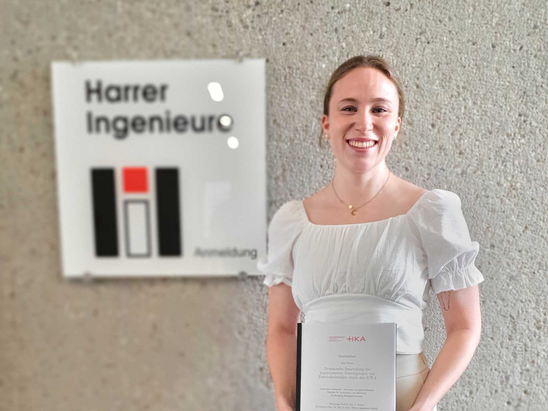 Nach ihrem sehr guten Abschluss ihrer Ausbildung zur Bauzeichnerin im Jahr 2018 – ebenfalls bei Harrer Ingenieure – hat Frau Bohn auch diese anspruchsvolle Aufgabe ihrer Masterarbeit mit Bravour bestanden (Note 1,0).