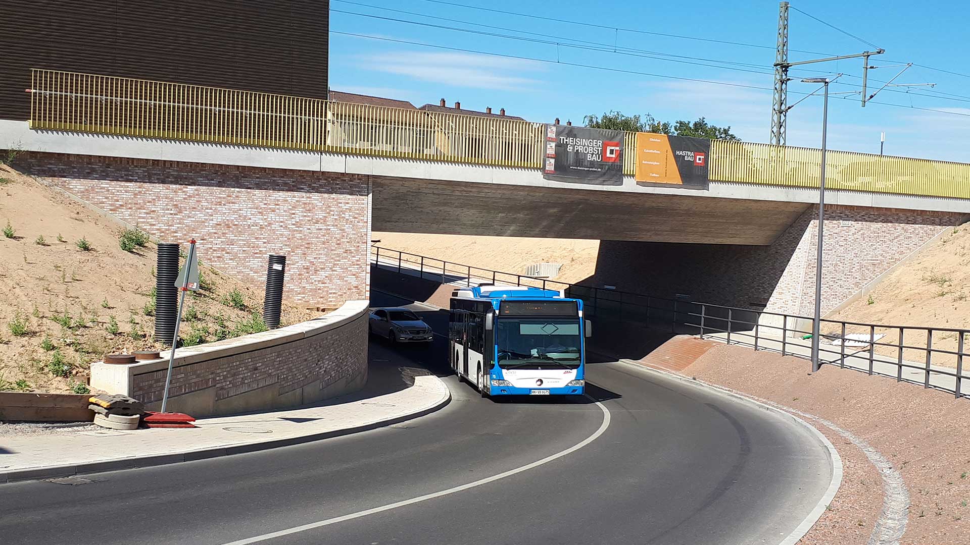 - Neubau der Eisenbahnüberführung als Teil einer Grundwasserwanne mit zugehöriger Hebeanlage; Stützweite 17 m