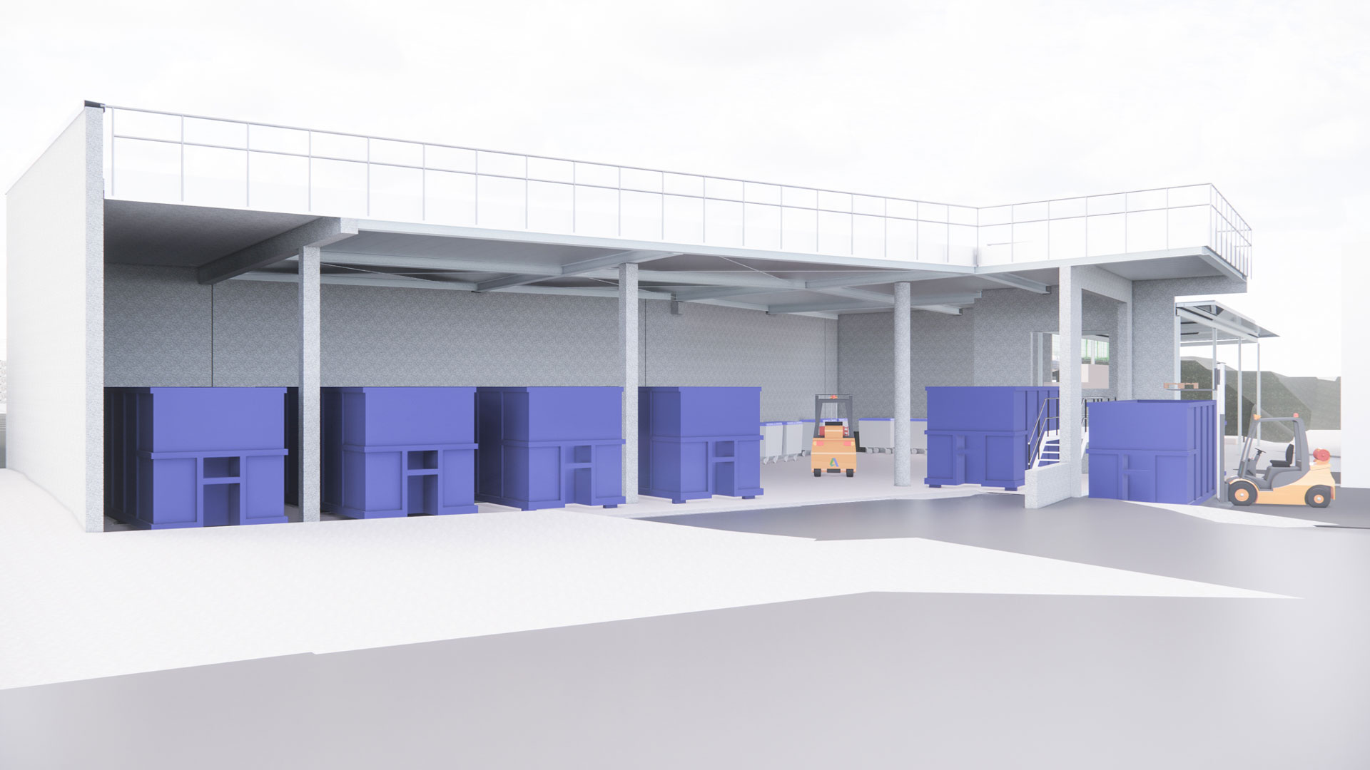 Das neue Gebäude, nimmt die bereits verwendeten und bisher an verschieden Stellen gelagerten Abfallbehälter und Abfallpressen an einer zentralen Stelle unter einem Dach auf. Die Zentralisierung und optimierte Anordnung der Behälter führt zur Vereinfachung der logistischen Prozesse. Der Abfallsammelplatz liegt in unmittelbaren Nähe zum Ausstellungszentrum ITC/VCC. Das Bauvorhaben trägt zur Aufwertung dieses Bereiches bei.